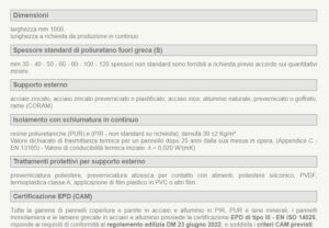 • Pannelli coibentati 5 greche e 3 greche spessori dal 30 al 120 mm